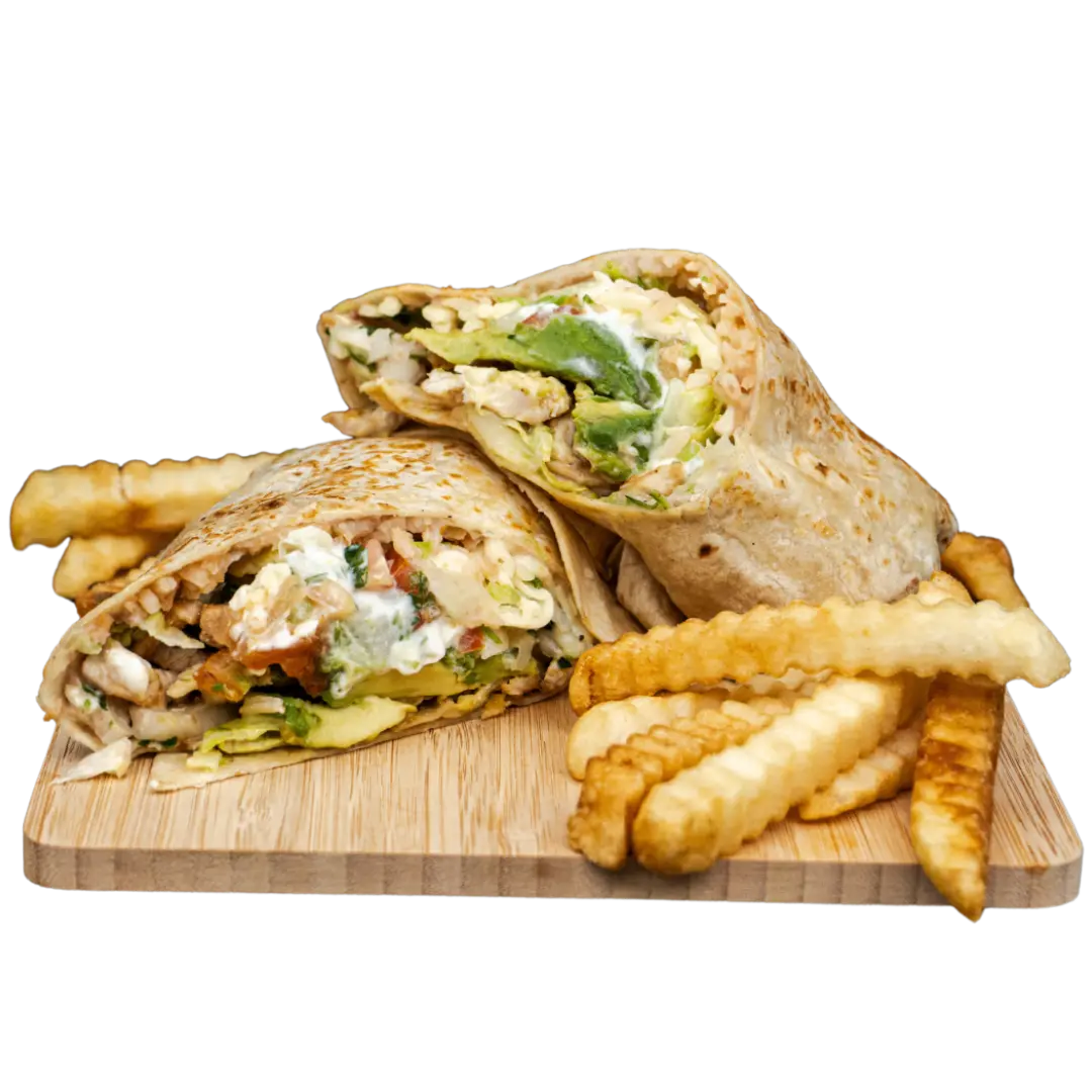 Burrito with your choice of steak, grilled chicken, pastor, chorizo or ground beef. Stuffed with beans, rice, lettuce, cheese, avocado, pico de gallo, and sour cream. Served with fries.